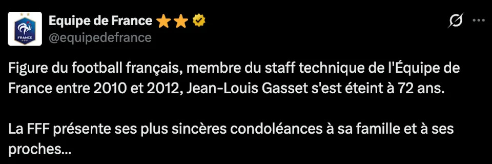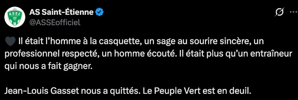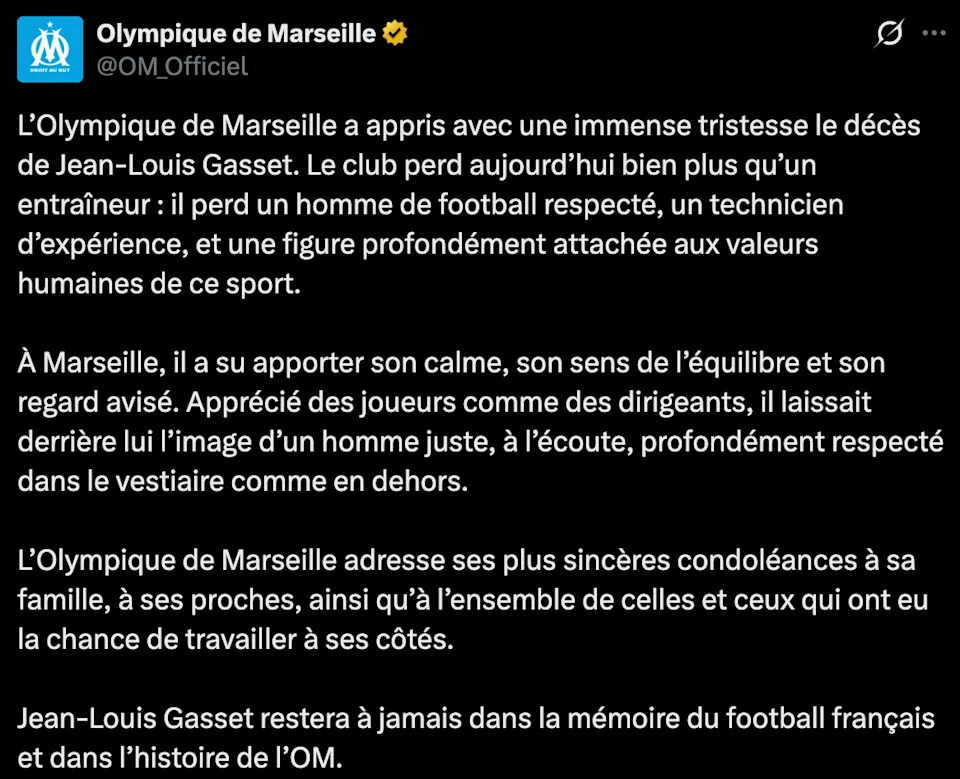 Jean-Louis Gasset passed away this Friday, December 26, at the age of 72. An iconic figure in French football, the former Montpellier midfielder had a long career as both head coach and assistant, notably working with PSG, OM, Bordeaux, Saint-Étienne, and even the Ivory Coast national team.